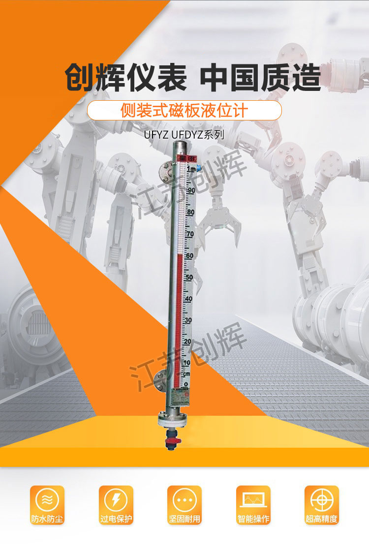CH-UHZ磁翻板液位計可用于各種塔、罐、槽、球型容器和鍋爐等設(shè)備的介質(zhì)液位檢測。磁浮子液位計又叫磁翻柱液位計或者磁翻板液位計,是一種能就地顯示或帶遠傳與控制的液位計。**用于石油、化工、輕工、電力、核工業(yè)以及食品、醫(yī)療等工業(yè)中,對各種她、罐、槽、箱等容器中介質(zhì)的液位進行指示和控制。它可以做到高密封,防泄漏和適用于高溫、高壓、耐腐蝕的場合。它彌補了玻璃板(管)液位計指示清晰度差、易破裂等缺陷,且全過程測量無盲區(qū),顯示清晰、測量范圍大。零部件材料采用1Cr18Ni9Ti、316L、0Cr18Ni9Ti、1Cr18Ni9Ti襯PTFE(聚四氟乙烯)、PVC、PP等材料及進口元件,具有***的可靠性和抗腐蝕性能。