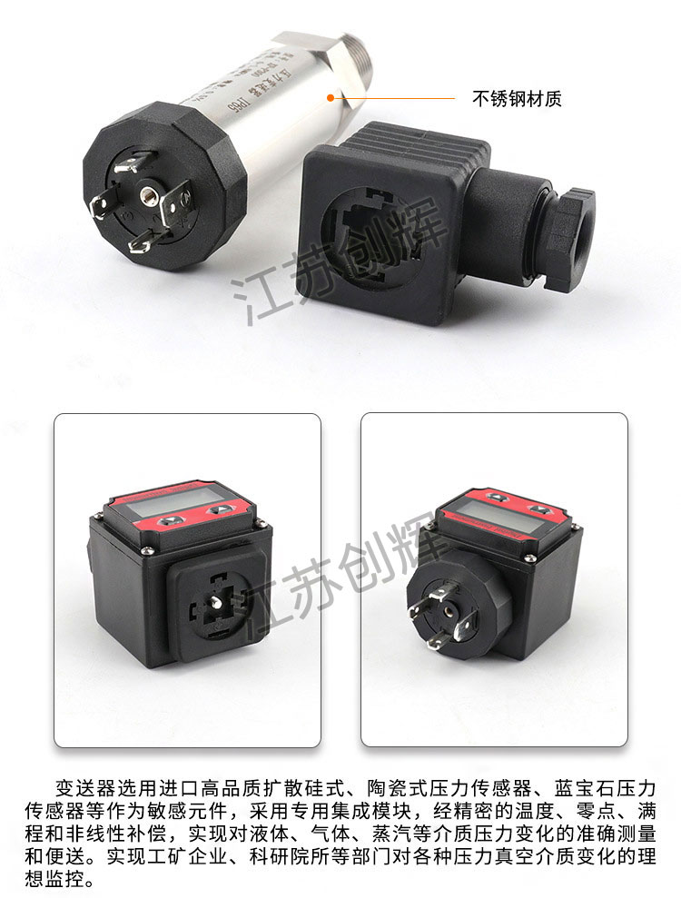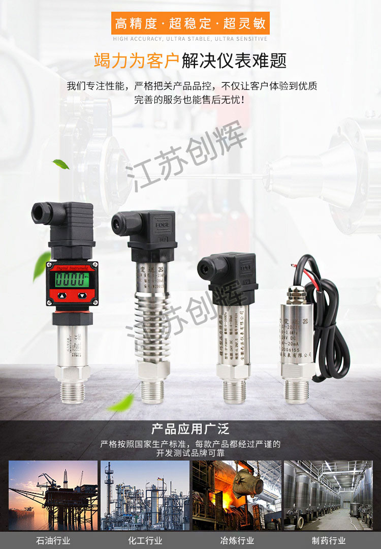 精巧型壓力變送器,采用金屬擴(kuò)散硅傳感器,金屬的延展性、精度及各方面的綜合指標(biāo)是很多其他類型傳感器無(wú)可比擬的。傳感器選用美國(guó)GE集團(tuán)NOVA公司進(jìn)口壓力傳感器或者M(jìn)ICROSENSOR公司合資壓力傳感器,產(chǎn)品由高精度傳感器和高集成化電子線路及不銹鋼外殼組成。**應(yīng)用于空調(diào)設(shè)備、恒壓供水、自動(dòng)化控制、空壓機(jī)、制冷設(shè)備、水處理系統(tǒng)、液壓系統(tǒng)、工程機(jī)械、發(fā)酵罐過(guò)程檢測(cè)等。